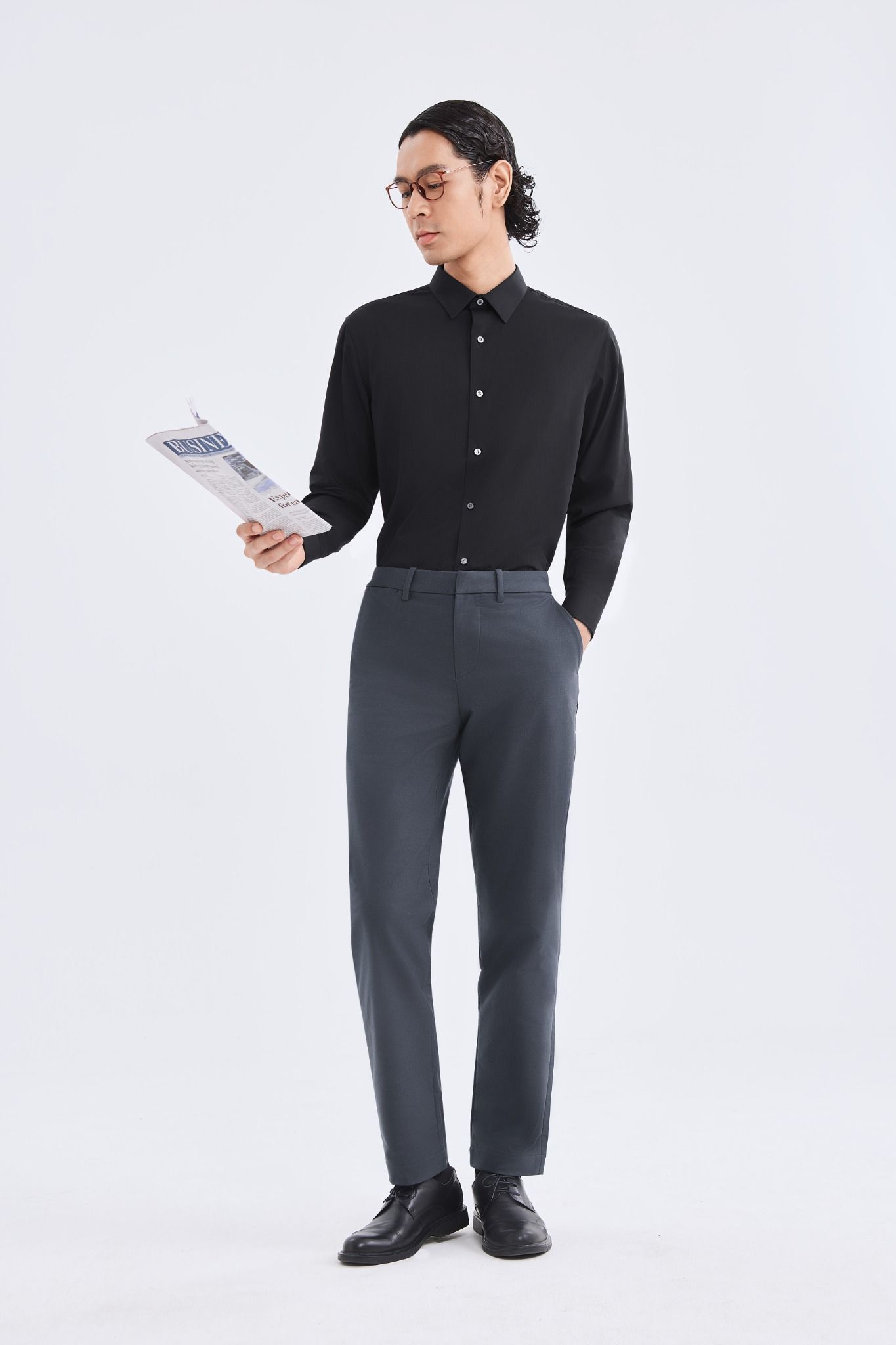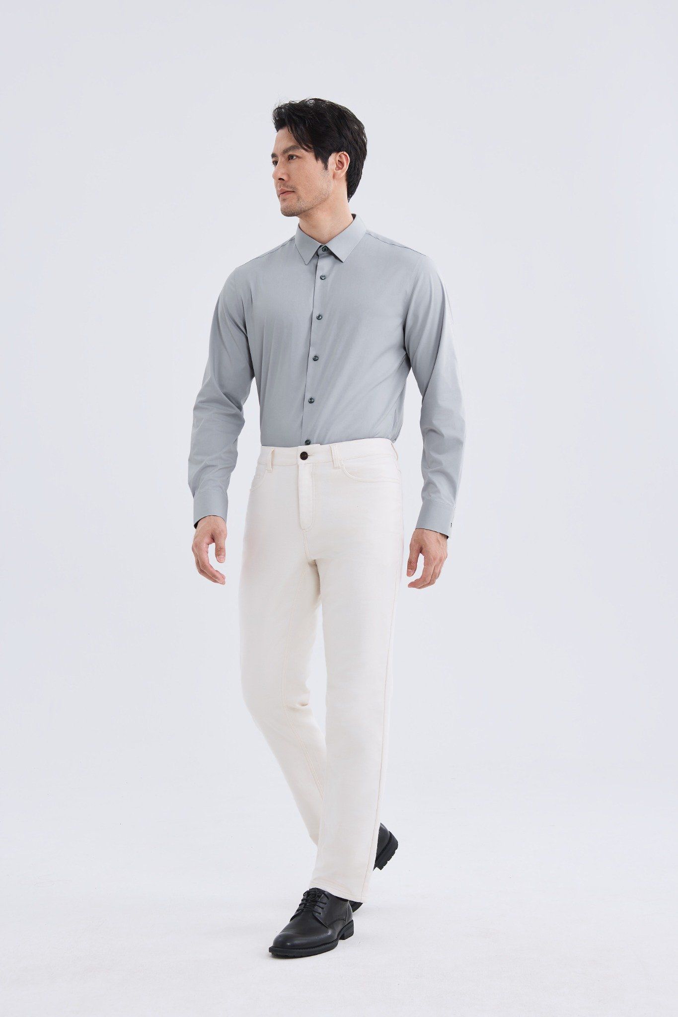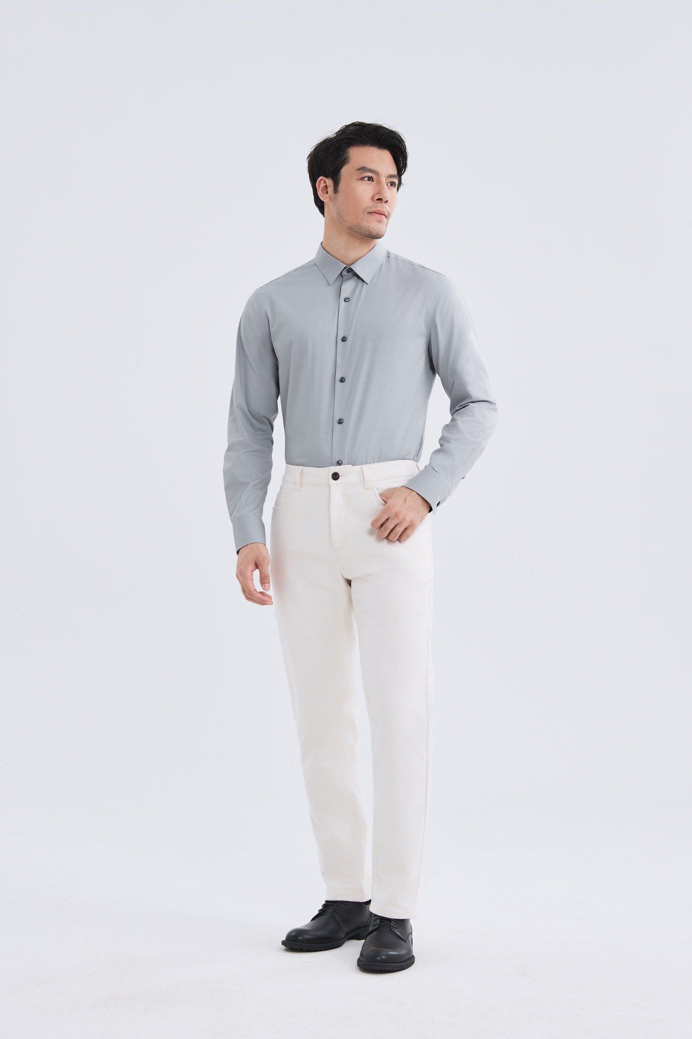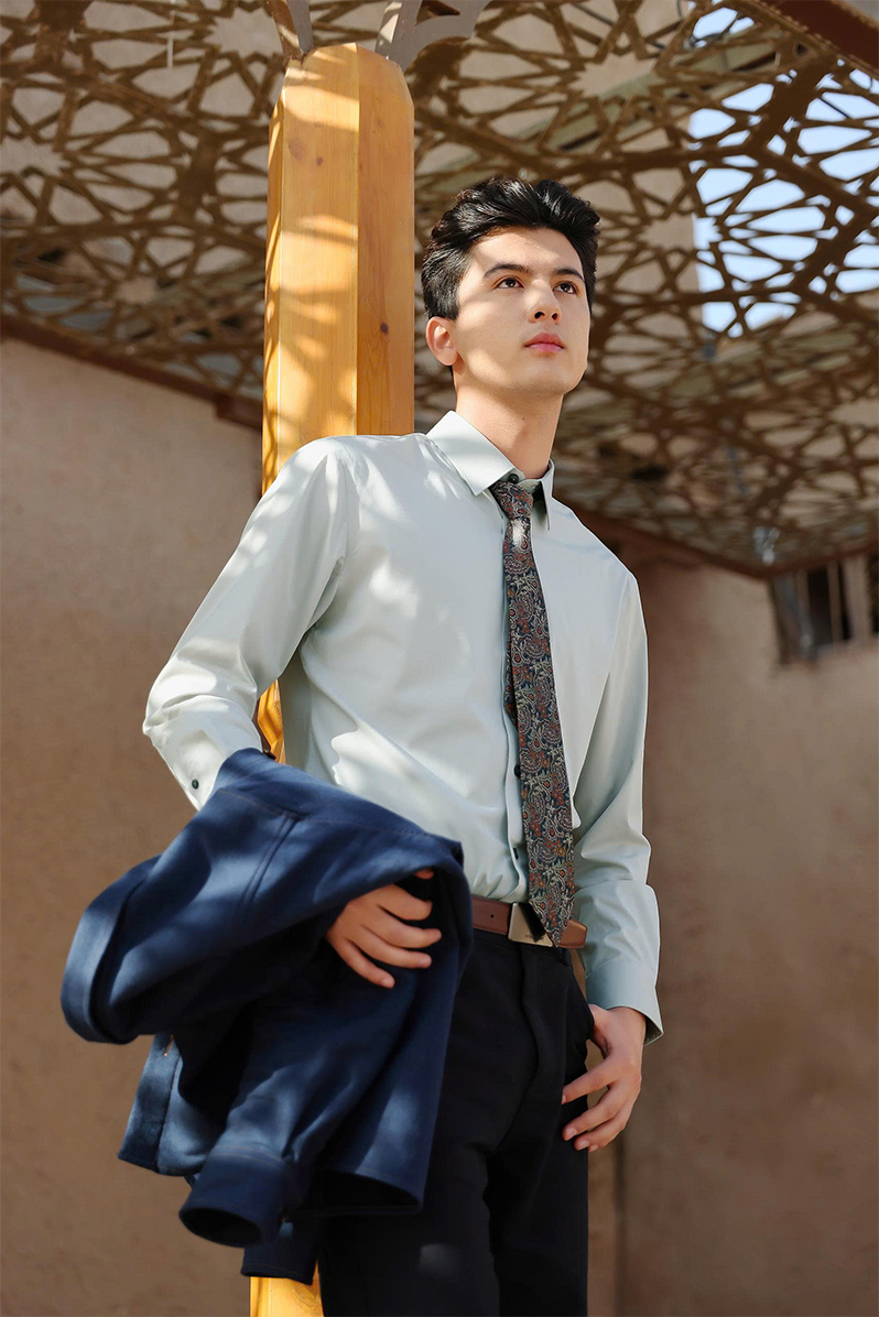 Phong cách công sở: Kết hợp Áo sơ mi nam Poplin Tay dài 202-03 với quần tây slim-fit và giày Oxford. Thêm cà vạt hoặc blazer để tăng vẻ lịch lãm.