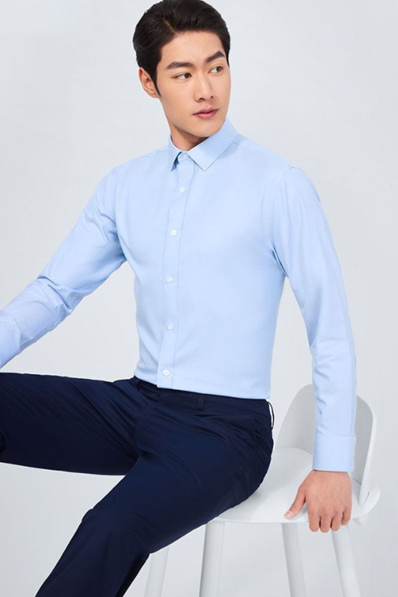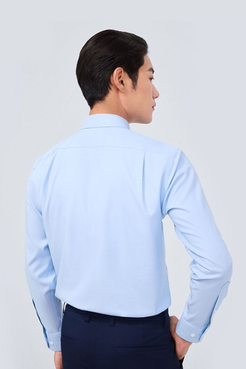 Công sở thanh lịch: Phối Áo sơ mi nam Twill Tay dài Chống nhăn 303-02 cùng quần âu tông trung tính (xám, navy hoặc đen) và giày da oxford để tạo diện mạo chuyên nghiệp.