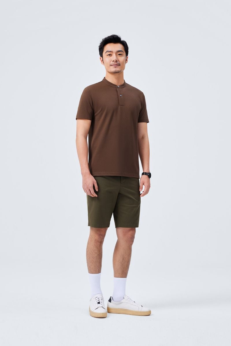 Thiết kế cổ đứng cùng tay áo ngắn tạo sự thoải mái, dễ dàng phối hợp với nhiều trang phục khác nhau.