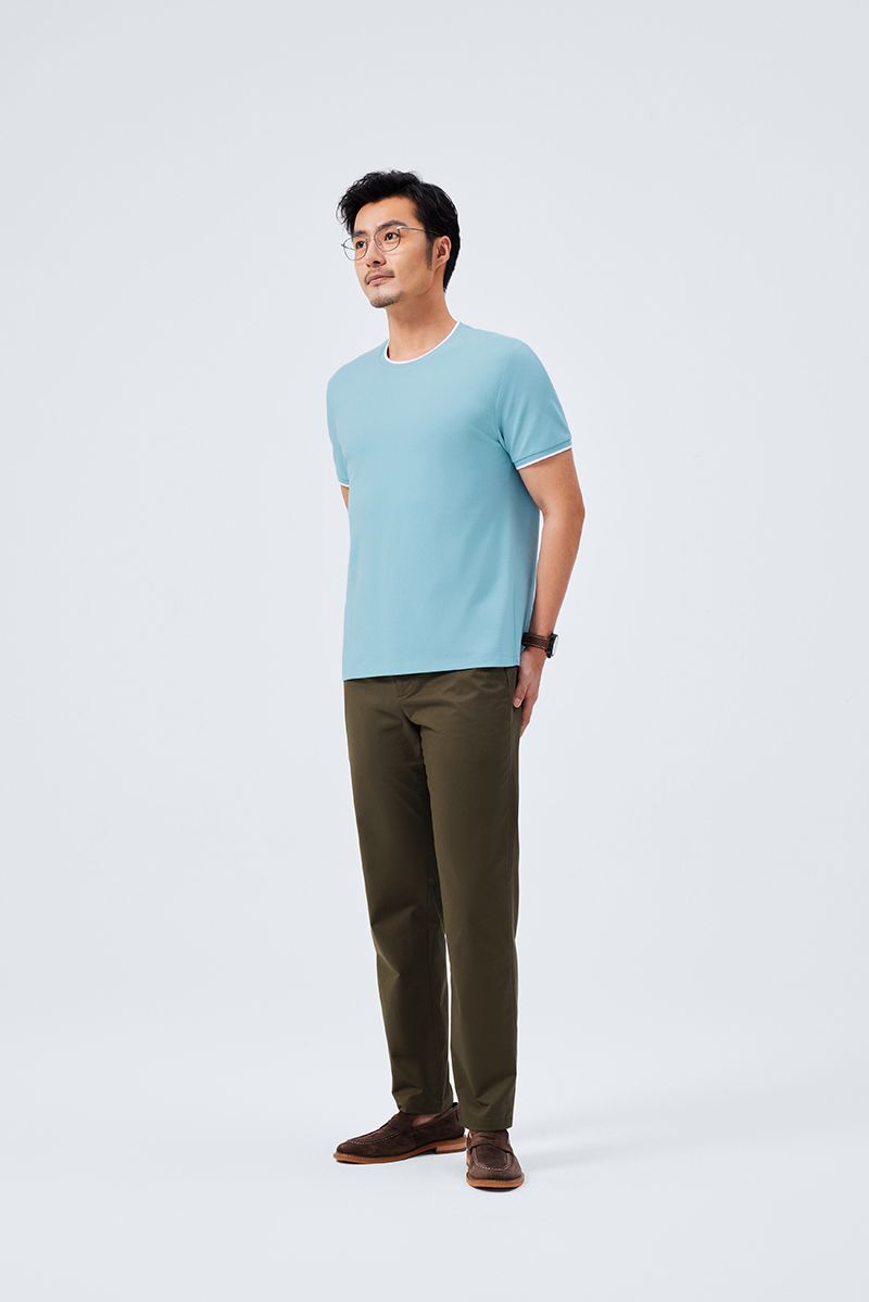 Smart-casual: Mix áo thun Pique cùng quần chinos và giày lười để đi làm hoặc gặp gỡ bạn bè.